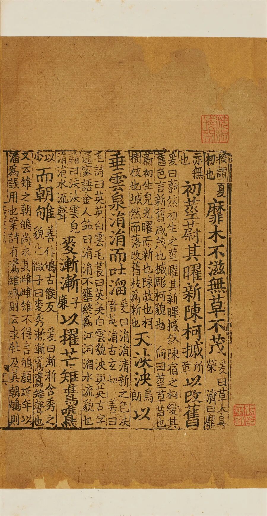 南宋刻本,存四卷二册(卷一至四)。原为蝴蝶装,后重装为线装。半叶10行,行18字。白口,单鱼尾,左右双边。版心上镌字数,下镌刻工姓名。钤印:安乐堂藏书记、子清、臣澄私印、杨氏海源阁藏、东郡杨氏海源阁藏、陶南山馆等。